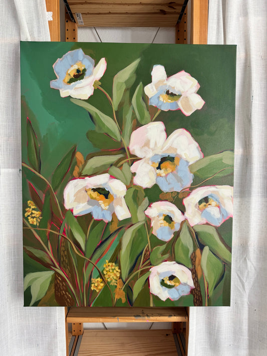 Verdant Still Original Acrylic Floral Painting 24”x30”