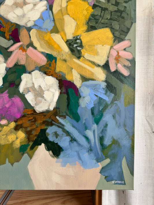 Broken Bloom Original Acrylic Floral Painting 24”x30”