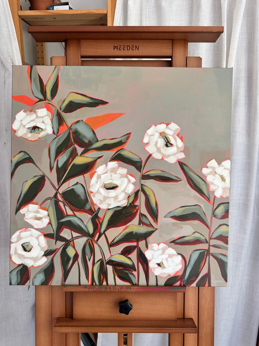 Between Sun and Shade Original Acrylic Floral Painting 20”x20”